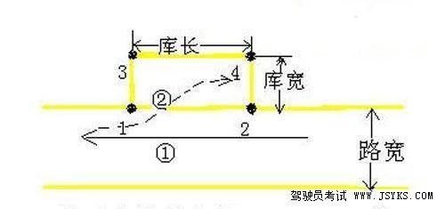 侧方位停车:如果是往右侧方位停车,首先要保持车身和右旁边的线保持一定的距离,一般是30-50CM的距离适合。然后观察右后视镜,如图,发现车尾与车库角1号一致时,往右打一圈方向盘,看左边后视镜,能够看到车库4号角,方向里面回正倒车。当左边后车轮碰到车库线(左边虚线),就把方向向左打死,当右边的后视镜,能看到车库4号角,入库摆正就可以了。